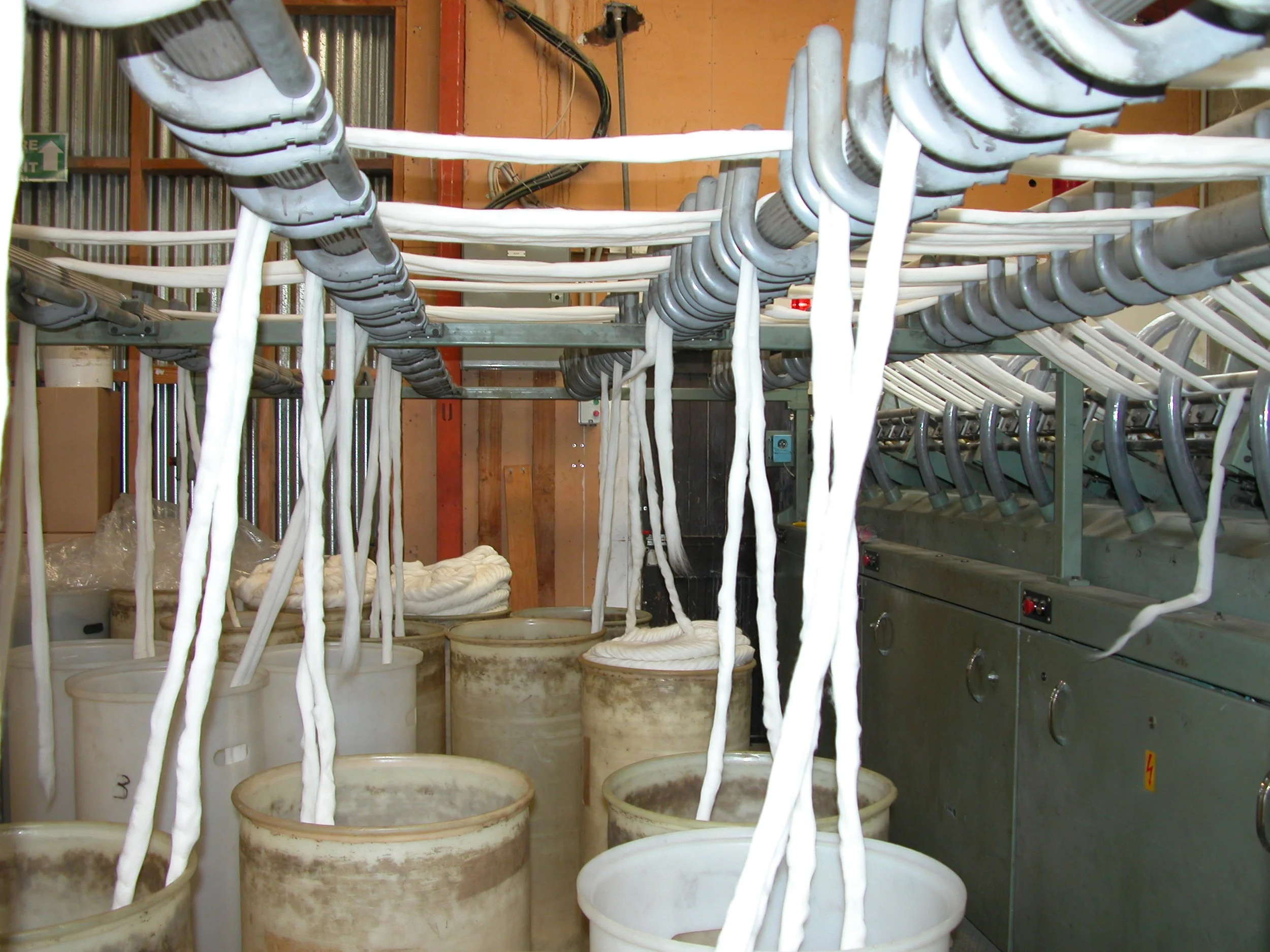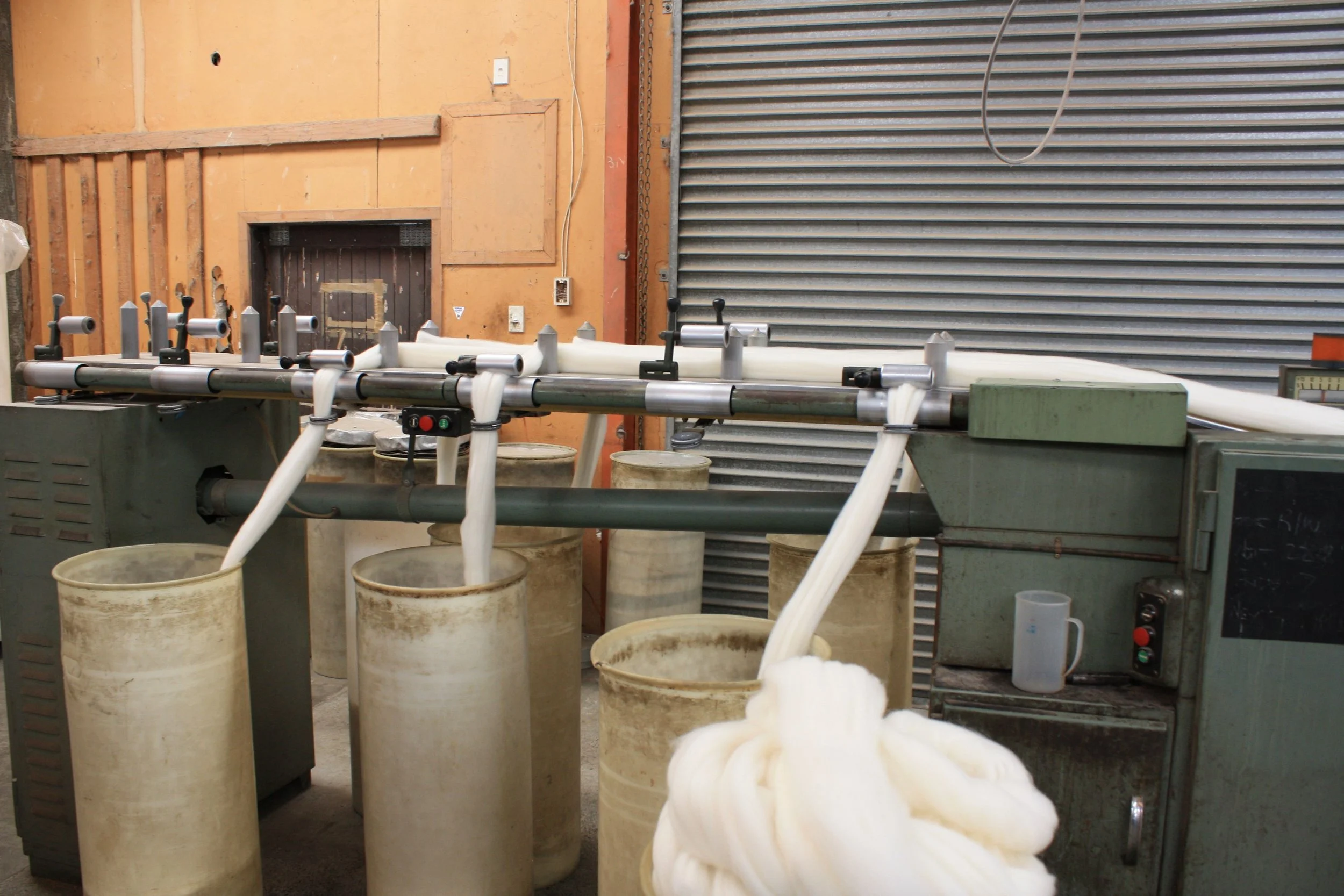 Design Spun, our mill, felt that an 8 ply yarn was the heaviest we could make to keep pilling to a minimum. It helps that the worsted spinning process involves realigning the fibres in the direction of spin, a process called gilling, to limit the number of fibres lying sideways in the yarn.