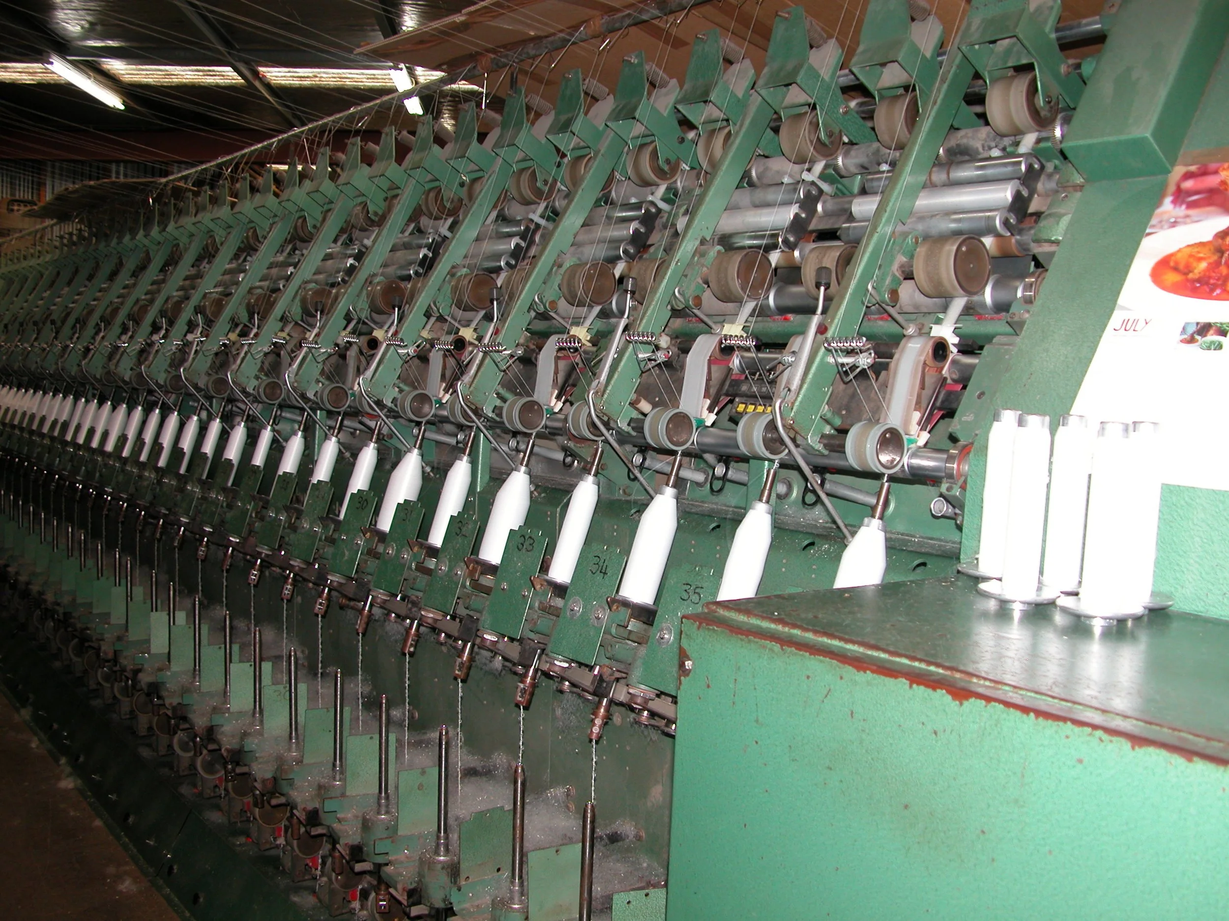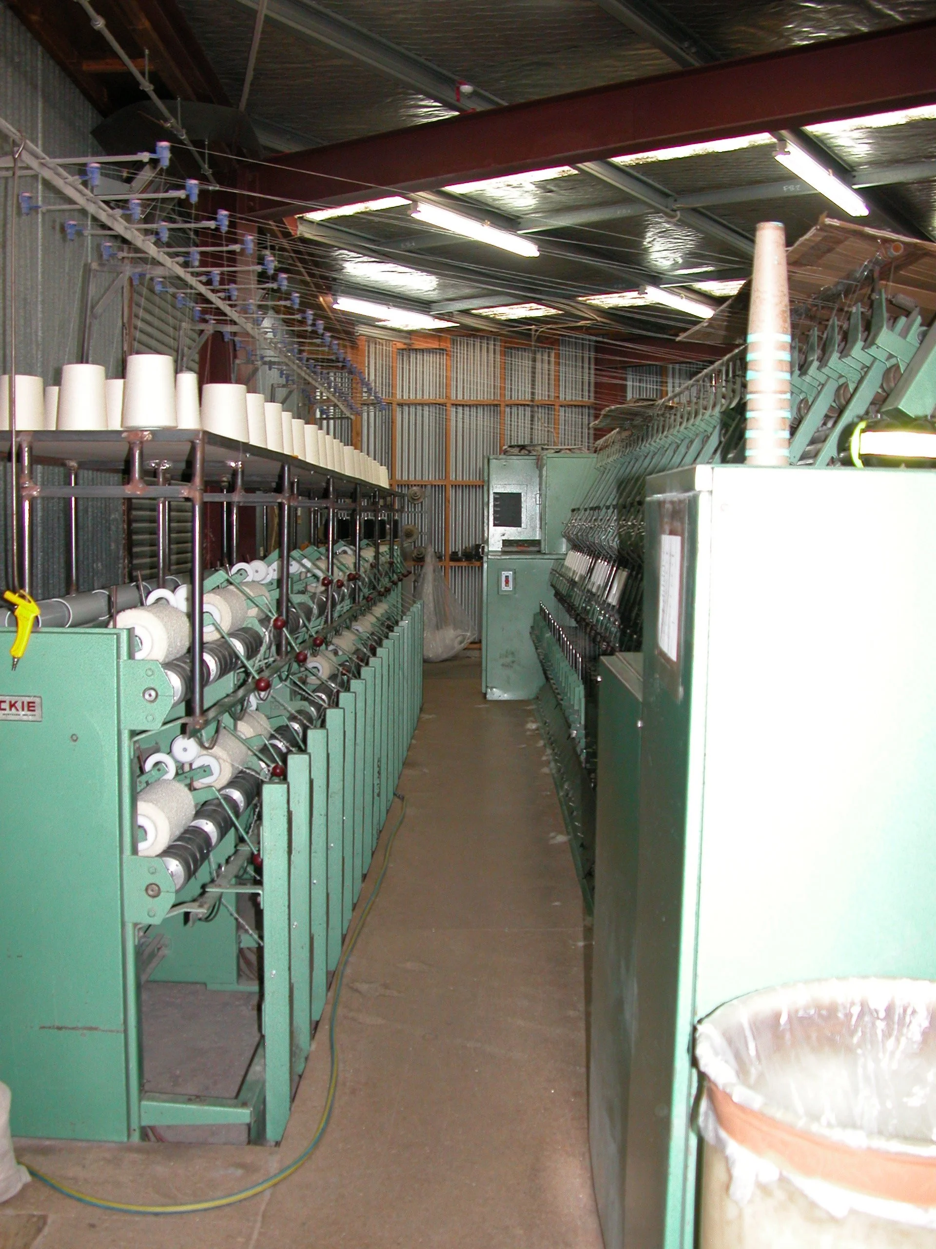 The mill suggested a further refinement: a style of plying called ‘twist-on-twist’, known to wear better than the standard, softer ply we had been using. Twist-on-twist uses a finer single yarn (the building block of all yarns). Rather than simply ply several strands together to get 4, 8 or 10 ply, with twist-on-twist the singles are first twisted into several pairs, then two or more pairs are twisted together to get the desired yarn weight; hence the name twist-on-twist. We decided to try it for our sock yarn, and though it doesn’t wear quite as well as our nylon-reinforced sock yarn did, it is much stronger than our standard 4 ply, and got us away from synthetics.